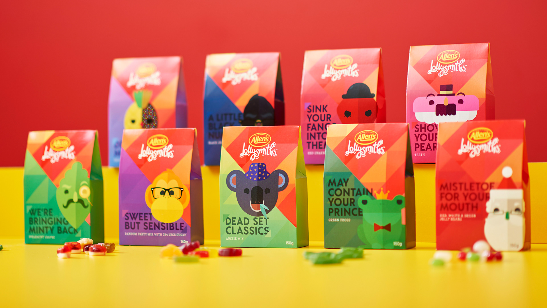 Nestlé wanted to find a new way for Allen’s to engage with millennials. One that did more than simply rely on nostalgia. So we developed Allen’s Lollysmiths – a sweet boutique designed to help people reconnect with their love of lollies. Childhood favourites are given a new twist, reinvented with a more premium, hand-crafted feel. Allen’s Lollysmiths re-imagines flavours and forges a new, more contemporary style.
