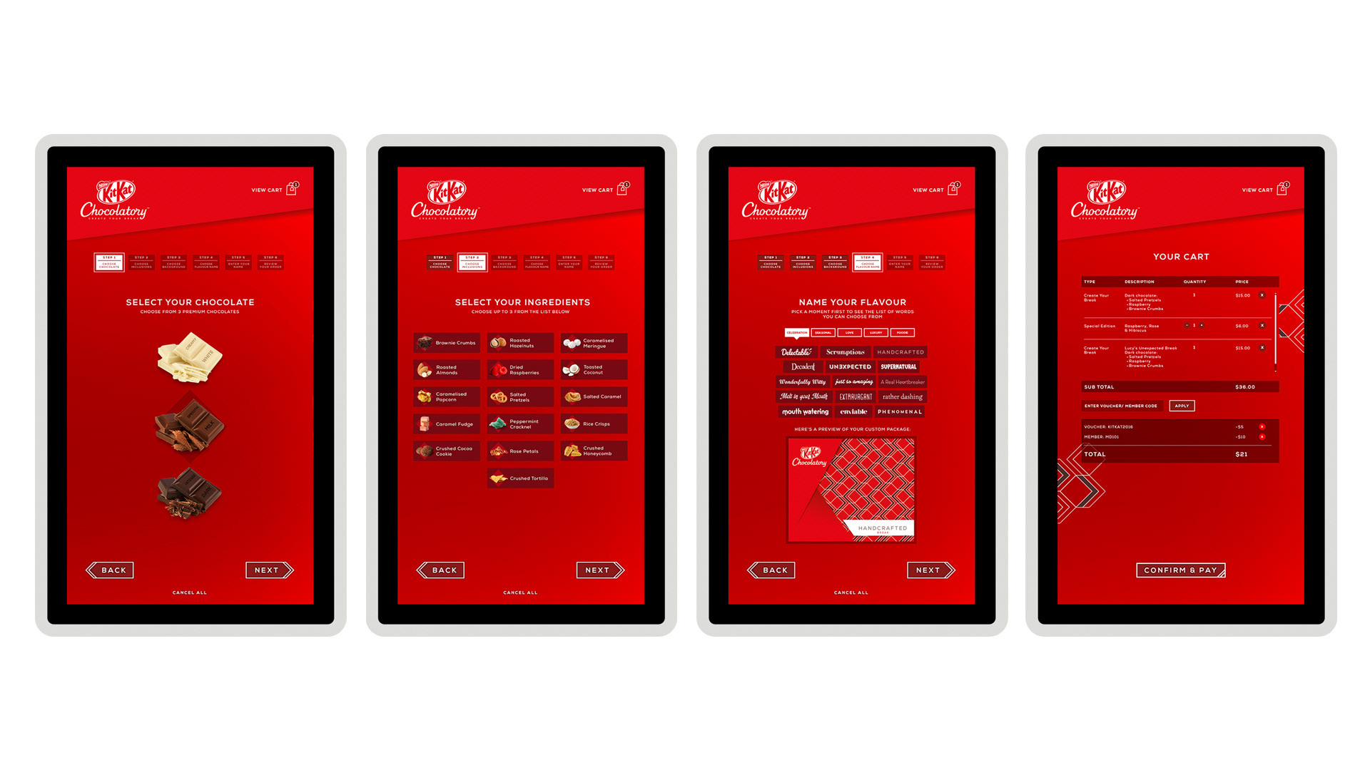 Another crucial part of the experience was creating the instore interface to take customers’ personalised orders. This ordering kiosk was the centerpiece for the ‘Create Your Break’ experience within the store. But for those that couldn’t make it, we also created an ecommerce site that enabled customers to enjoy a virtual experience of the Chocolatory and order their Kit Kats online. For the first time ever, Kit Kat could now offer their chocolatey treats direct to consumers without stepping in to a supermarket.