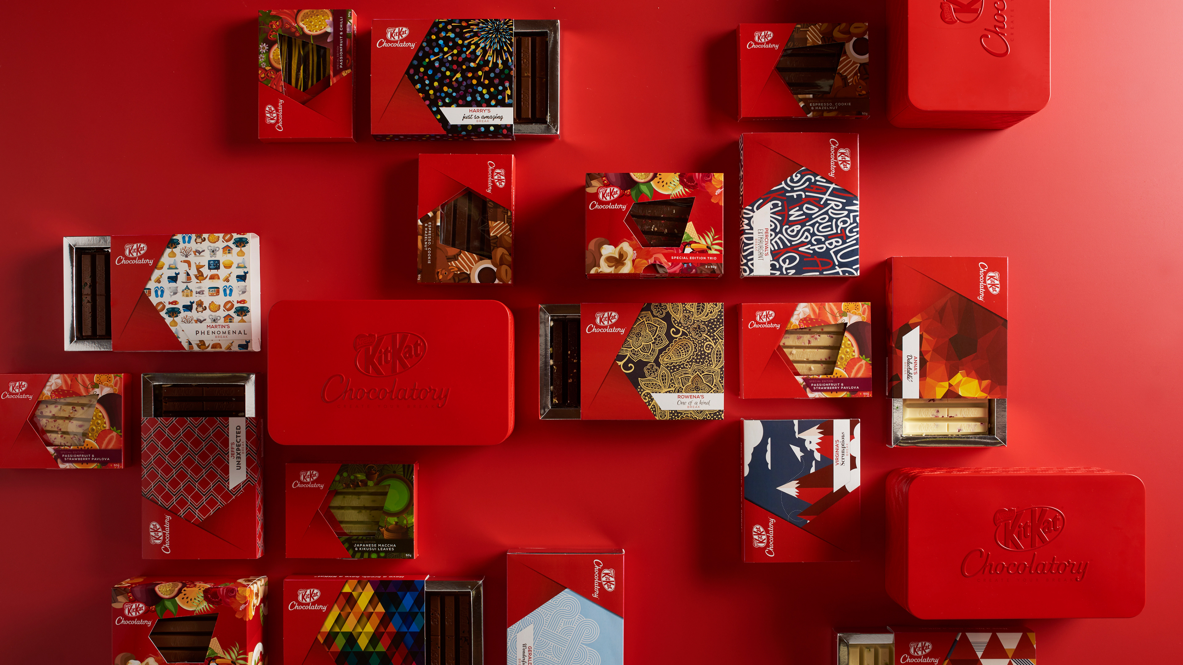 In order to establish Kit Kat Chocolatory as a premium brand, we needed to find a way to make the experience that extra bit special. These were bespoke, hand-made chocolate creations. So the look and feel of every touchpoint needed to communicate handcrafted, artisanal cues. Not only did the packaging and visual ID provide that sense of occasion (and justify a significant price premium), it also opened the usage occasion to a whole new opportunity. Products from Kit Kat Chocolatory were now the perfect gift for friends, colleagues and family. Far more thoughtful and personal than a standard box of Lindt chocolate.