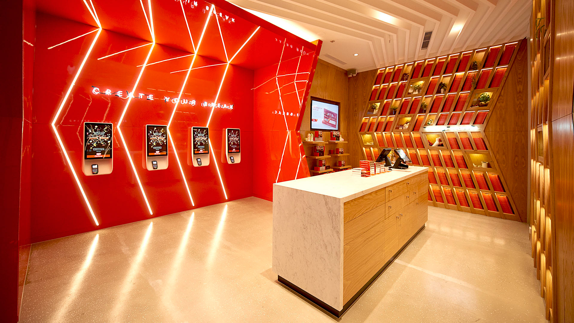Kit Kat Studio started as a 4 week pop-up store but has now become a permanent part of Melbourne’s retail scene. We had the rare opportunity to build a store from the ground up. A lot of careful consideration went into the customer experience and their journey as soon as they walked through the door. We had to co-ordinate the logistics of how staff and chocolatiers utilise the space, the details of the store fitout, the palette of materials and finishes and most importantly, how to hero the consumer-created Kit Kats and packaging alongside the vast range of pre-made goodies. We collaborated with a very talented interior designer and specialist retail-builders to create a store that’s been celebrated by Nestlé globally as a new way for people to connect with the Kit Kat brand.