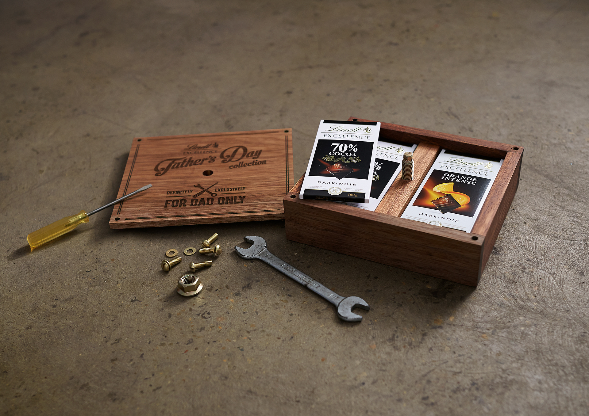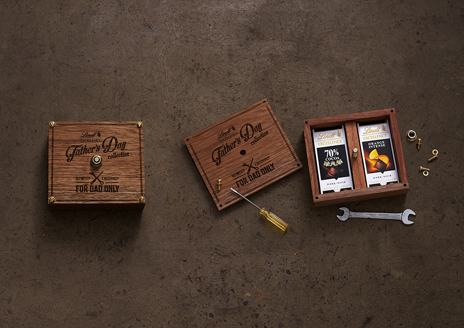 In the off-chance that Dad gets a half decent Father's Day gift, the rest of the family are more than willing to relieve him of it pretty quickly. So to help dads hold onto their gift of Lindt Excellence chocolate, we created a unique raid-proof collectors box that can only be opened by dad and his trusty toolkit.